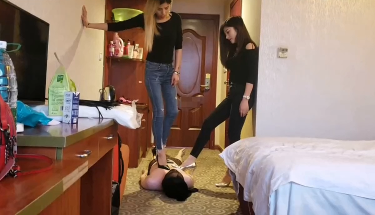 安琪仙仙双女王调教美足高跟踢踩贱狗