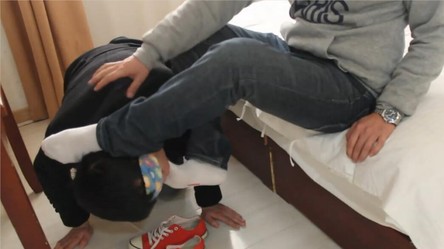 帅气健壮痞子调教贱奴跪舔棉袜吃臭脚