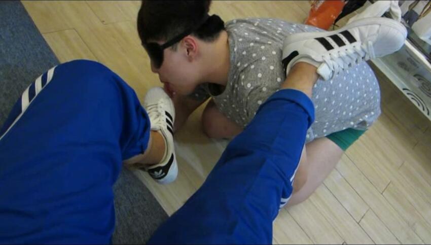 帅气痞子狠主调教贱奴舔脏鞋棉袜吃臭脚
