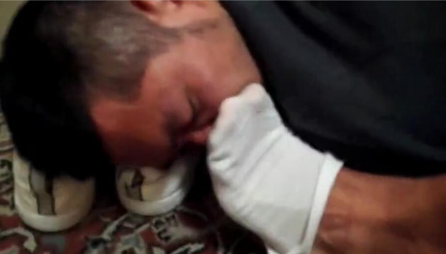 正装痞子爷们调教贱奴跪舔皮鞋吃臭脚喝圣水